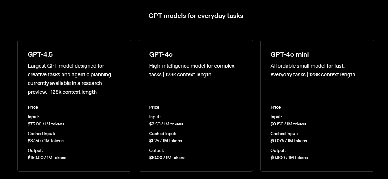 Vamos con los hechos: GPT-4.5 cuesta $75 por millón de tokens de entrada y $150 por millón de tokens de salida. Esto lo hace aproximadamente: